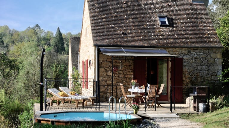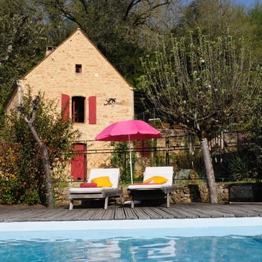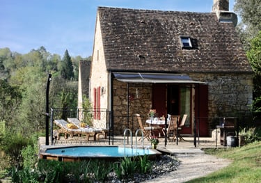 A perfectly relaxed location for a wonderful family holiday in the heart of the Perigord Noir. Quietly situated in 1.5 hectares of private fields and woodland yet only 1km from village shops, a friendly bar, family restaurant, an excellent butcher and your essential morning supplies of croissants & artisan breads. The old railway line has been paved and provides a peaceful, attractive, dedicated cycle path / walkway between the centre of the village and the town of Sarlat.